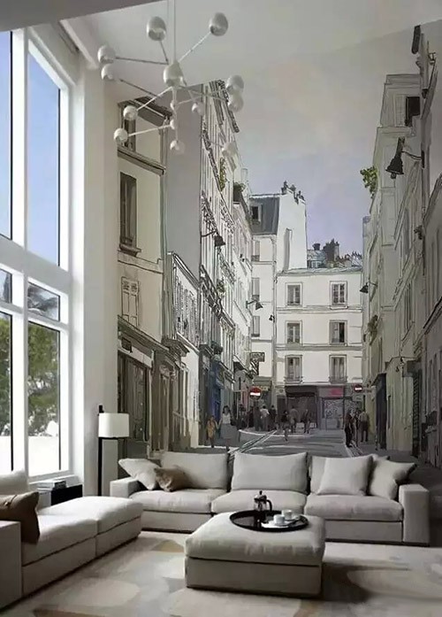 复古题材的真实场景背景墙,往往看起来更像油画,油画的质感赋予空间更多一层的真实感,仿佛又回到了当时那个年代,属于那个时代的意境。如果你是复古主义的忠实拥戴者,那么可以选择这些题材,它们会让你的空间变得更加具有质感。