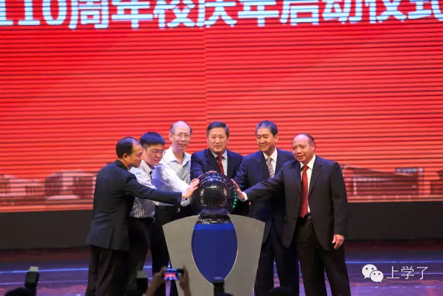 暨大校长胡军(右三)、党委书记蒋述卓(右一)以及南方日报社社长张东明(左三)等一同启动暨大110周年校庆
