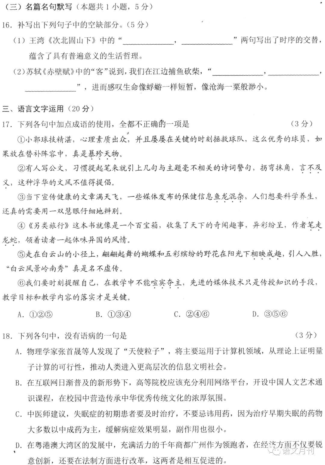 [高考]2018年广州市高考语文一模试题与答案